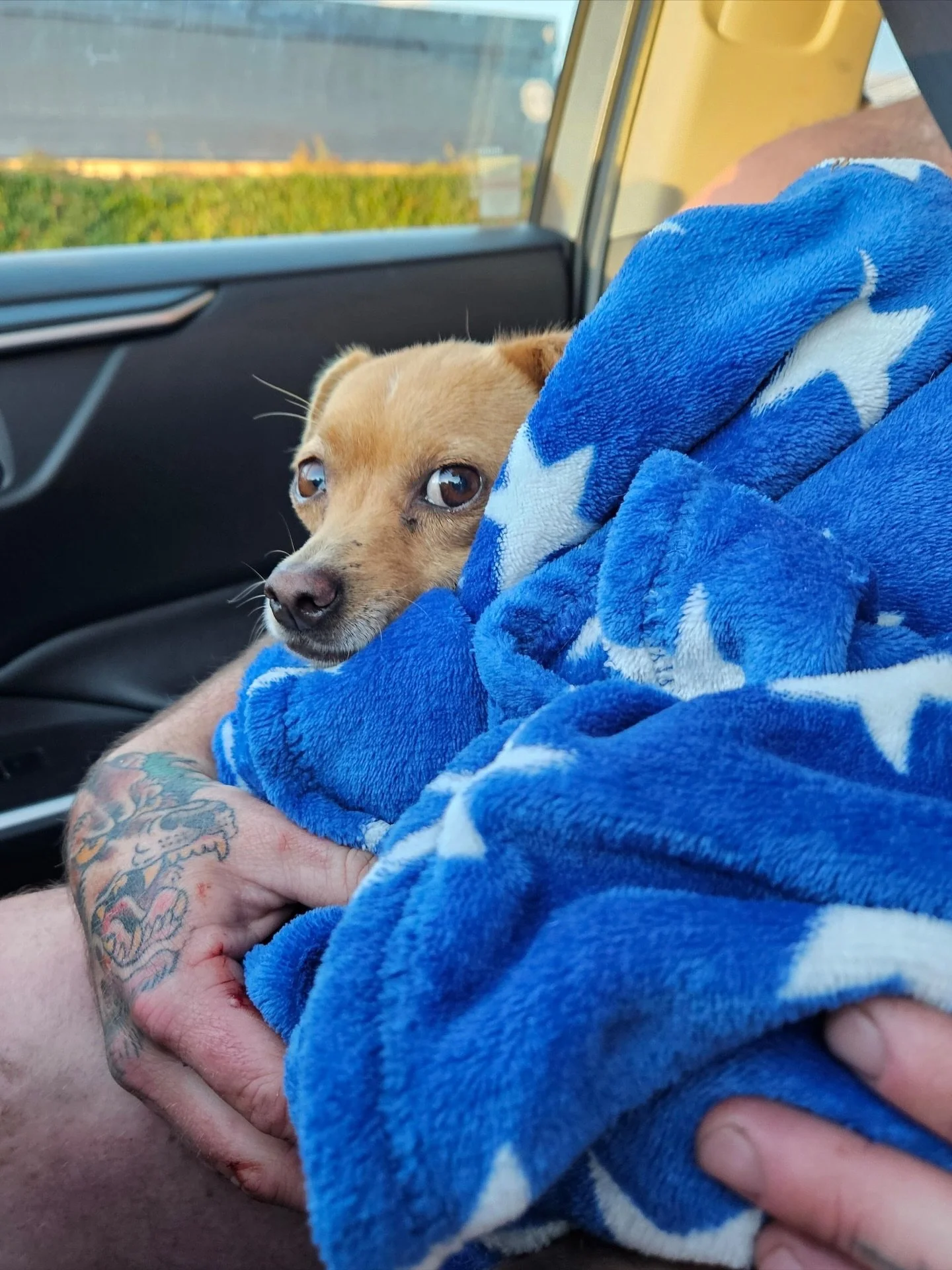Dominic was picked up by the local city animal control after being tied up behind a business, and no one claimed him. He was underweight and dirty but still an extremely happy boy. He is very curious and loves meeting new friends furry and not.