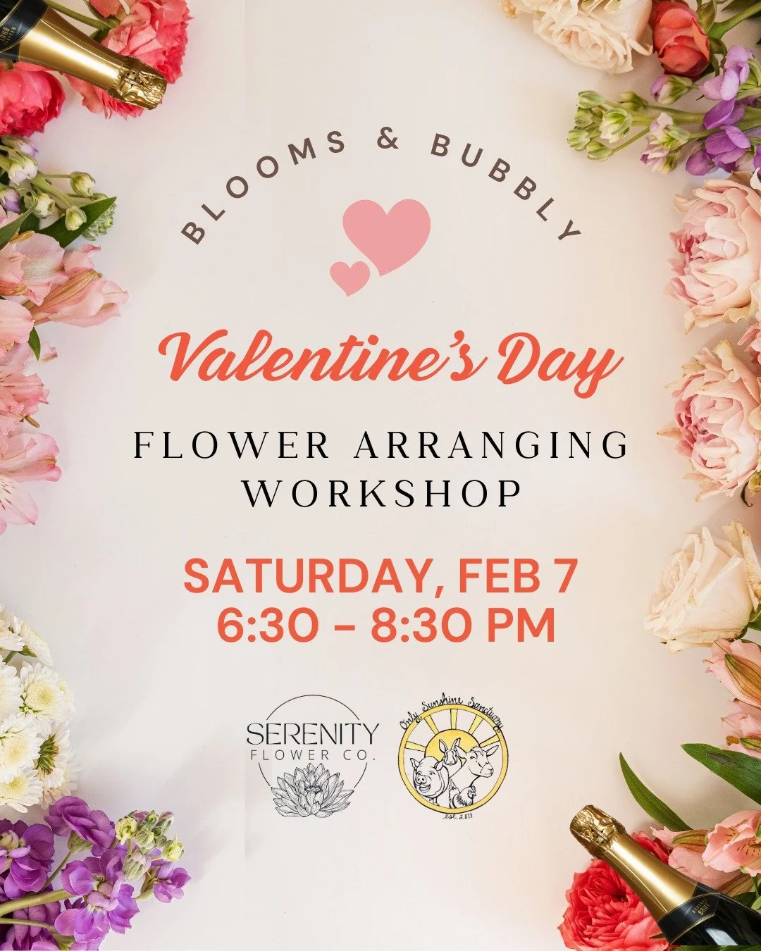 Join Serenity Flower Co. for a flower-arranging class at Studio 135 at Clara in Midtown, Sacramento! Bring your favorite person—whether it’s a friend, family member, or someone special—and enjoy an elegant Valentine’s Day experience. Meet our adorable bunnies, hear their stories, and let your creativity bloom as you craft your own arrangement to take home. Adults 21+ can sip champagne and enjoy light snacks during this unique event. All proceeds benefit Only Sunshine Sanctuary, a small nonprofit farm sanctuary in Elverta, CA. Reserve your spot now!