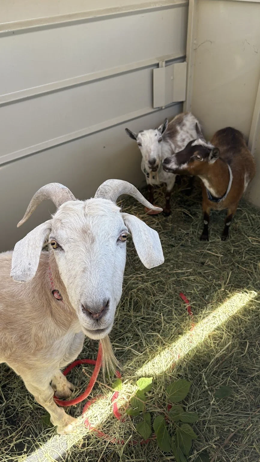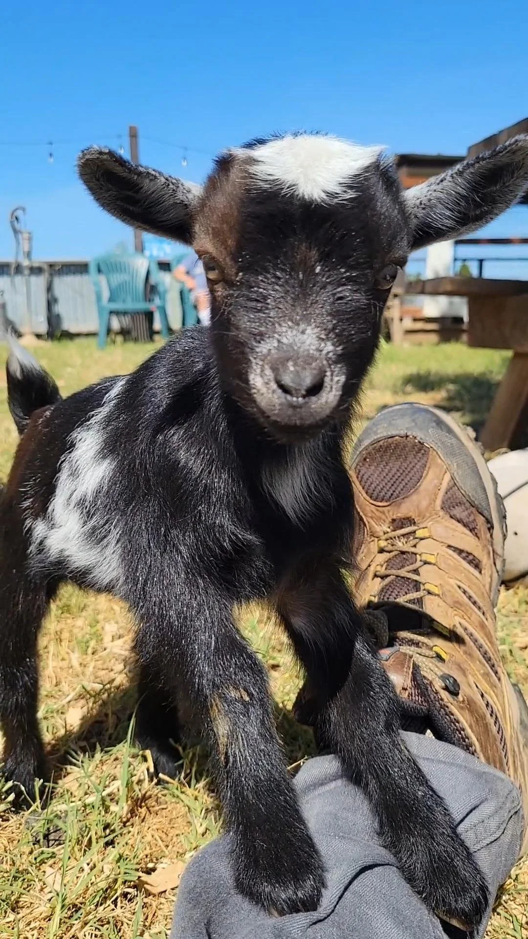 Our sweet baby goats Ziggy and Bowie were rescued from a dairy farm after their mom passed away due to improper medical treatment from the farmer. We've been bottle feeding them ever since. They are so sweet and lovable, jumping up on people’s laps during movie night and following us around while we do farm chores.